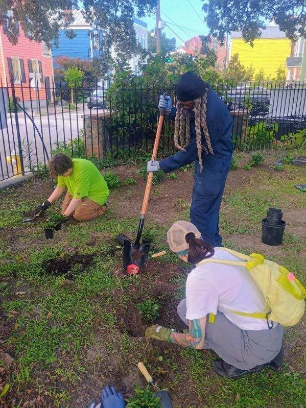 We planted a publicly accessible food forest of 20 fruit trees along Drake Street, thanks to the generous hosting of Trident Technical College. These include Mulberries, Paw Paws, Oranges, Pomegranates, Persimmons, Plums, and Strawberries. We hope the neighborhood will enjoy them as they mature!